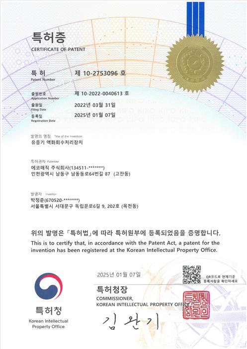 ⓒ 유증기 액화 회수 처리 장치 NO.1 에코매직 주식회사